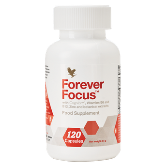 Combining traditional herbs, vitamins and minerals with clinically studied Cognizin: don’t just get through the day, take charge of it with Forever Focus*. Featuring extracts of rhodiola, bacopa, green tea and guarana, Forever Focus combines these botanicals with the natural beneficial effects of vitamins B6, B12, pantothenic acid, zinc* and clinically studied Cognizin to help you take charge of your day.
