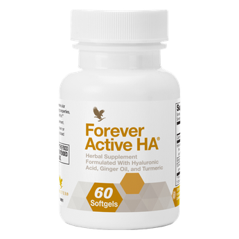 Hyaluronic acid (HA) is a naturally occurring substance in connective tissue that works to cushion and fill spaces between the cells. Like many other substances in our bodies, hyaluronic acid depletes with age. Forever Active HA provides you with a unique form of low molecular weight HA, plus ginger oil and turmeric roots.