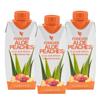 Forever Aloe Peaches® is a great way to drink your daily aloe. This drink contains 84.3% pure inner leaf aloe vera gel paired with natural peach puree for sustaining your immune system and maintaining natural energy levels. The aloe is hand-harvested from our own fields and is the first of its kind to receive a certification by the International Aloe Science Council (IASC) for content and purity.